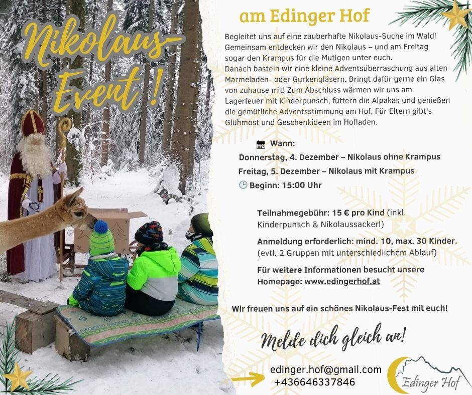 Auch heuer laden wir euch wieder zu unserem besonderen Nikolaus-Abenteuer am Edinger Hof ein!